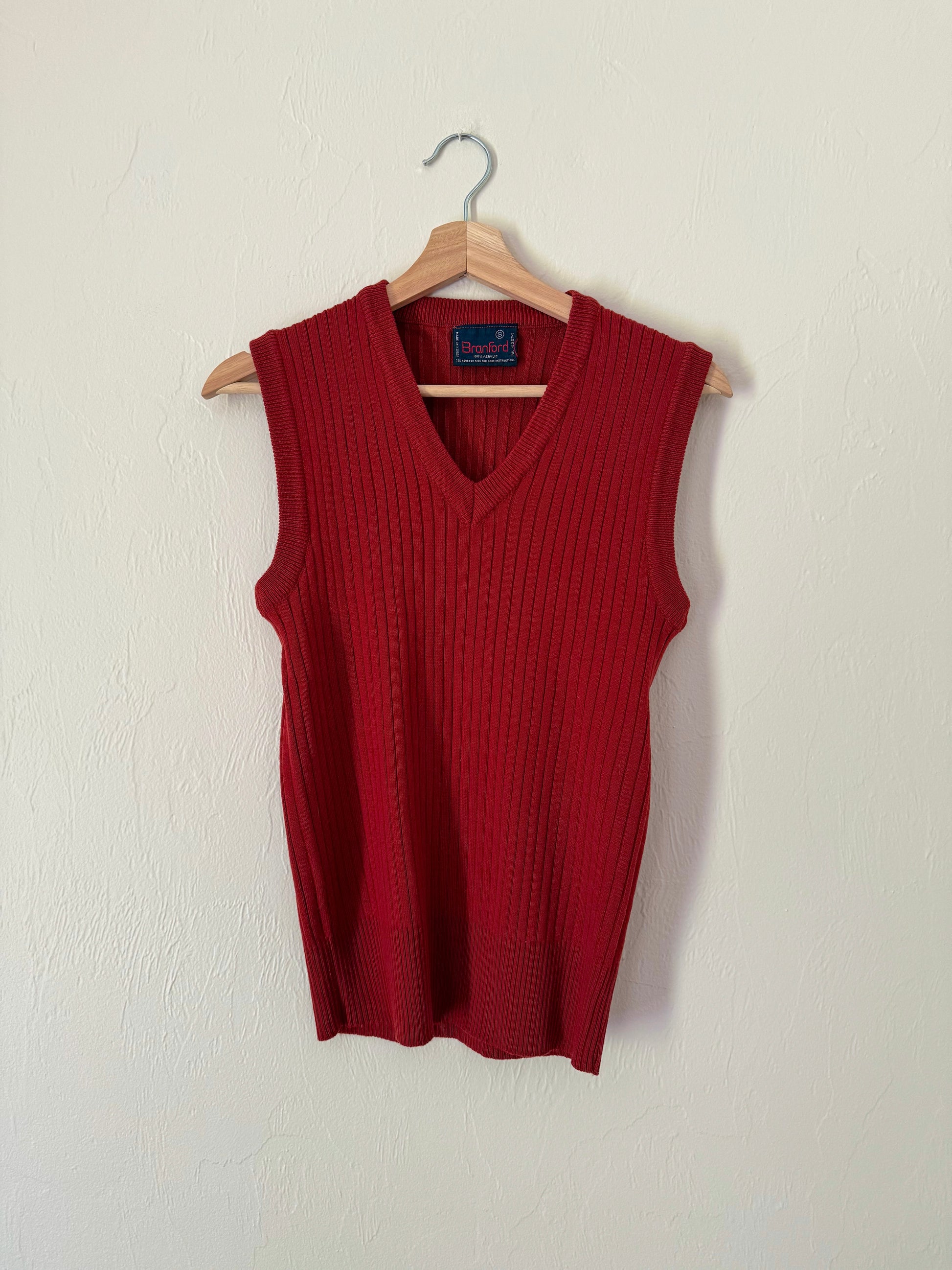 Vintage burgundy ribbed sweater vest by Branford. 100% acrylic.